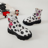 جنس بوت مدل میکی داکی خالدار چرم صنعتی باکیفیت خارجی بسیار نرم است.
