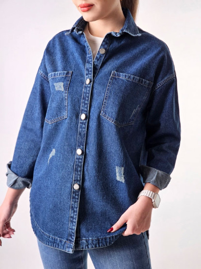 مانتو جین آبی تیره سنگشور شده و زاپدار هست .